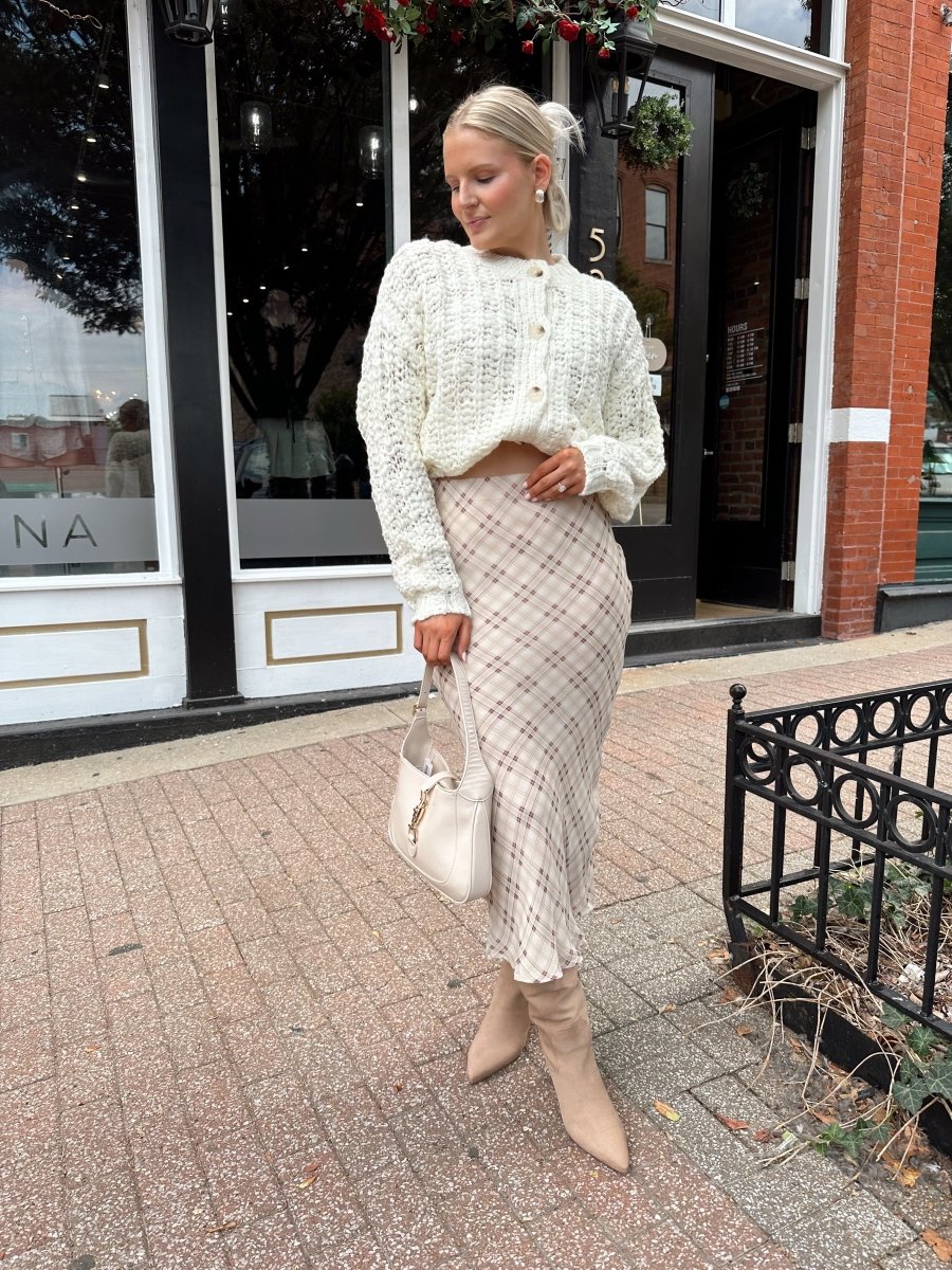Charlene Beige Plaid Midi Skirt