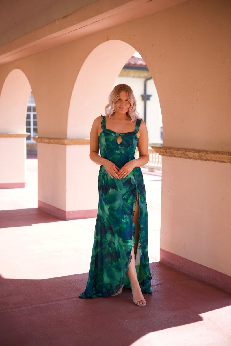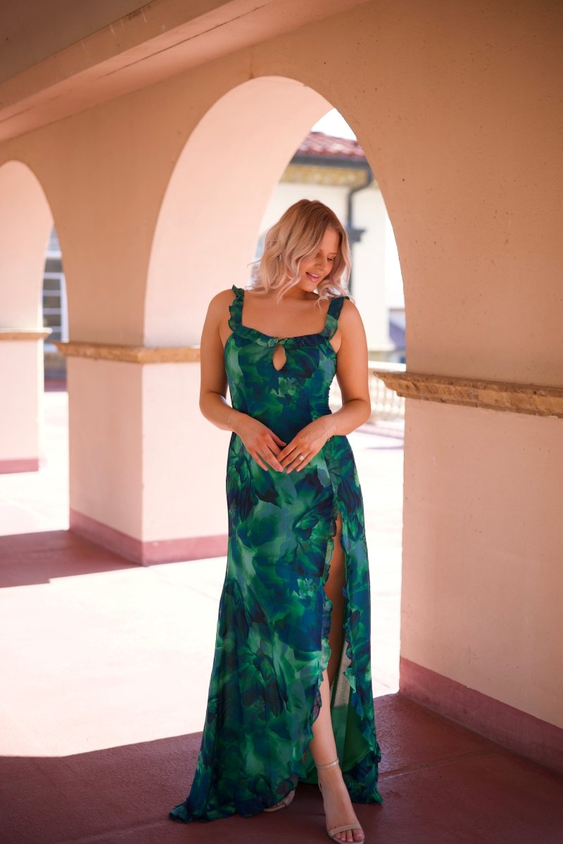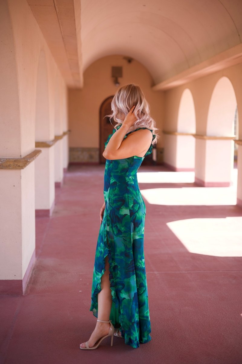 Calypso Tropical Ruffle Maxi Dress