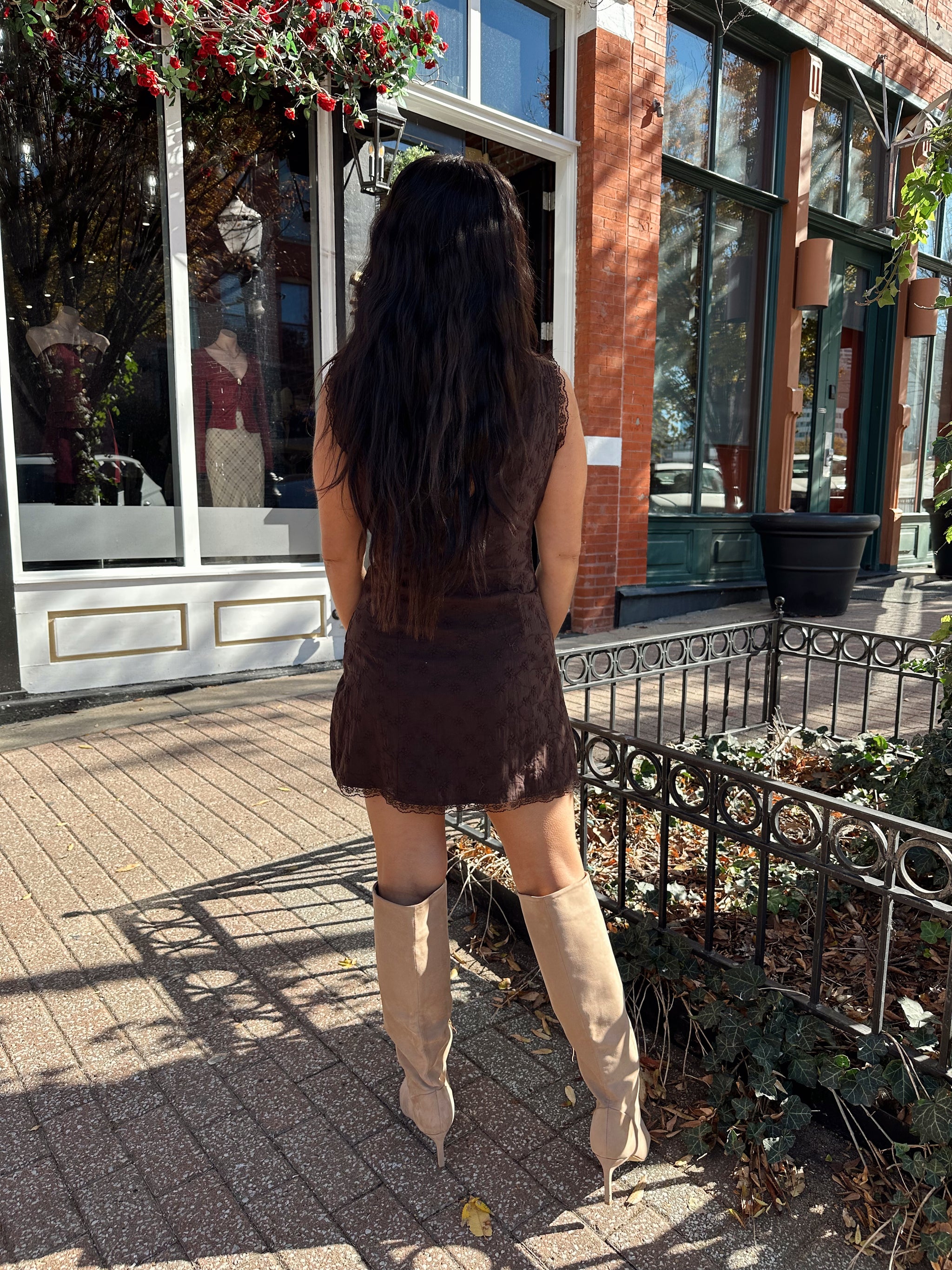 Rhea Brown Eyelet Lace Mini Dress